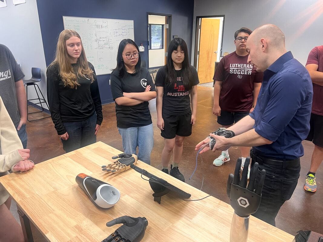 Through WiR SA’s community and industry partnerships, Katie and Lin, rising juniors and members of the Lutheran High School robotics team in San Antonio, were selected for mentorships with Alt Bionics, Inc., a local company that develops accessible prosthetics. The opportunity came after a team tour, where CEO & Founder, Ryan Saavedra, was impressed by their STEM experience and passion for equal access. Through the school’s Innovation Hour and Genius Grant program, they worked on self-paced projects exploring prosthetic design, coding, and biomechanics.