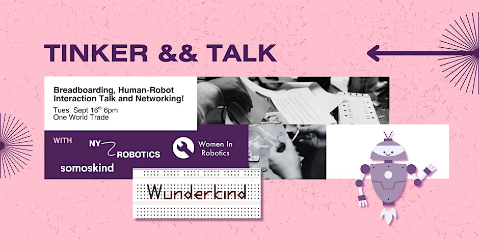 Join us for a hands-on breadboarding workshop, Human Robot Interaction talk, and networking with fellow tech enthusiasts at Tinker & Talk! We are so stoked to be partnering with Wunderkind to host this event on the 74th floor of the World Trade Center!